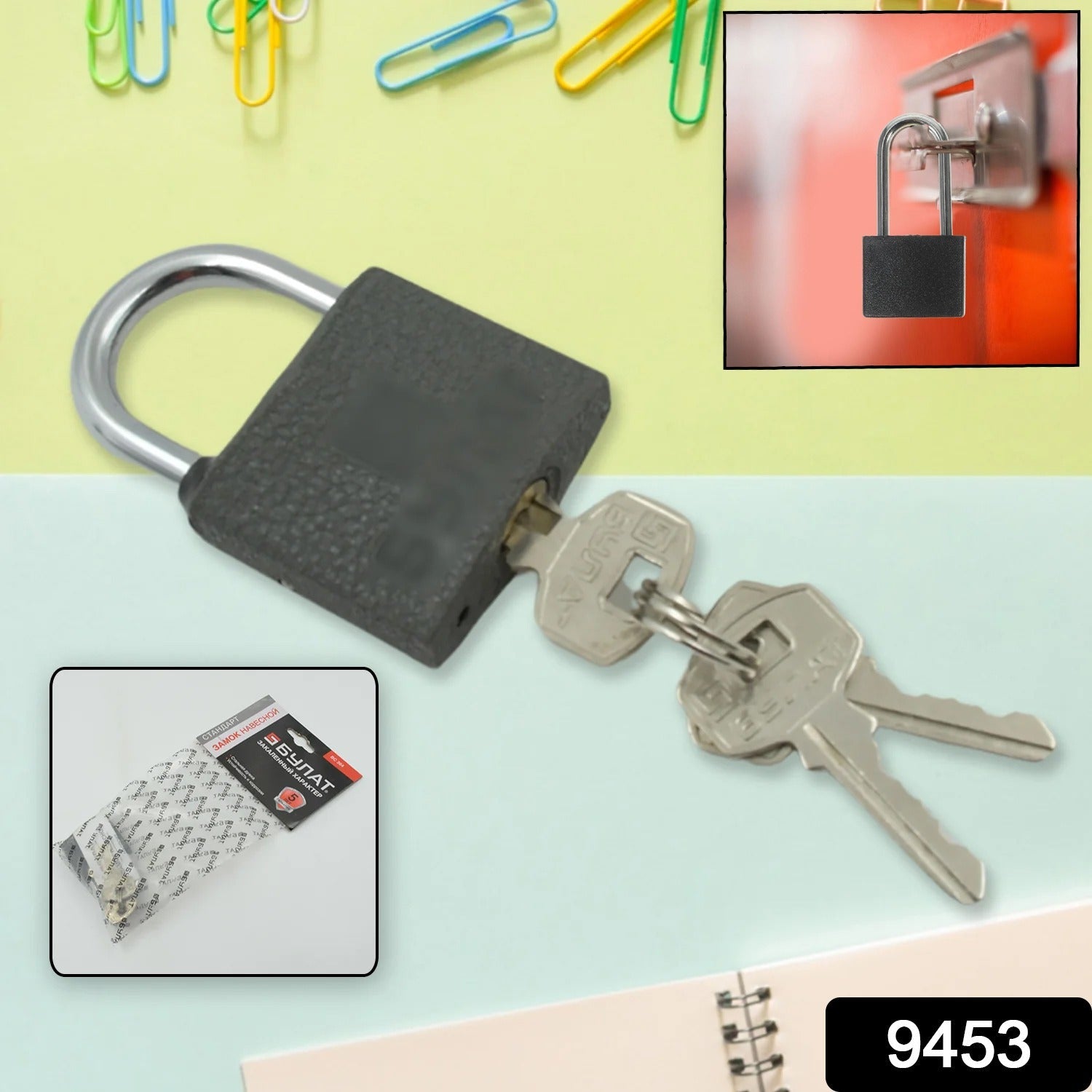 9453 Iron lock, Brass Core and Thickened Black Iron Door Lock With 3 pc Keys for Home Dormitory, Waterproof Antirust Anti-theft Padlocks Outdoor Gate Shed Locks Warehouse Small Iron Door Drawer Lock ( 37 mm )